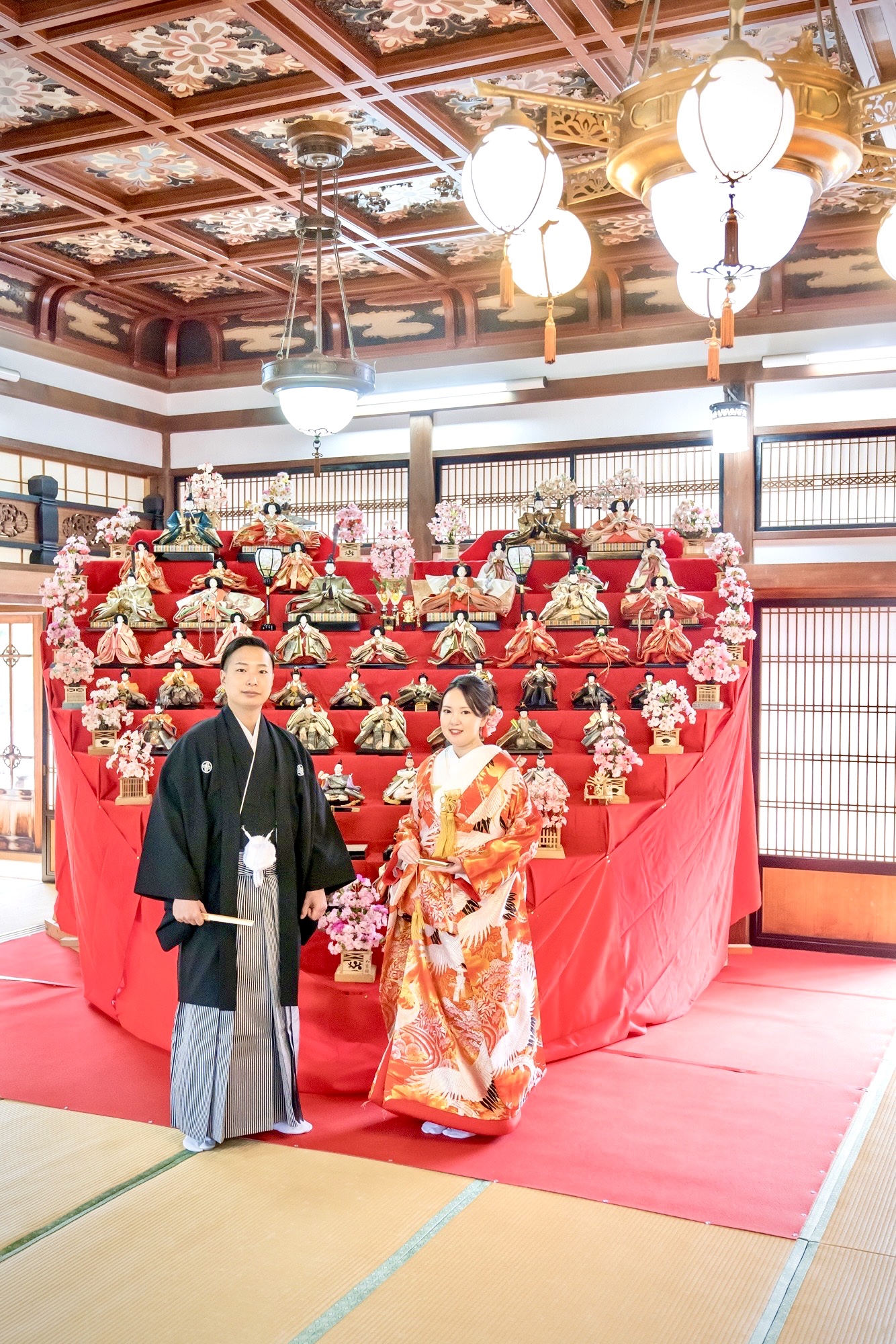 秋に撮影したのですが、ちょうど有名な雛人形を飾っていて、それを背景に撮影もできました。