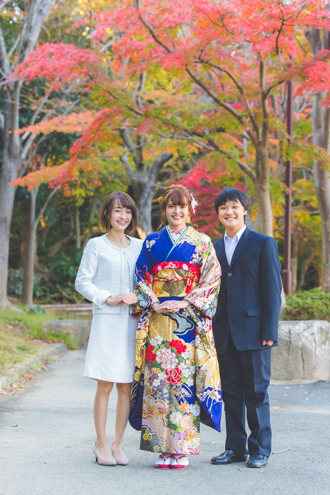 桜の時期に比べて、紅葉の時期の撮影の方が、撮影できる期間が長く、公園も空いているのでお勧めです!家族でお越しいただきますと、皆様で撮影させていただき、楽しい思い出が残せます。